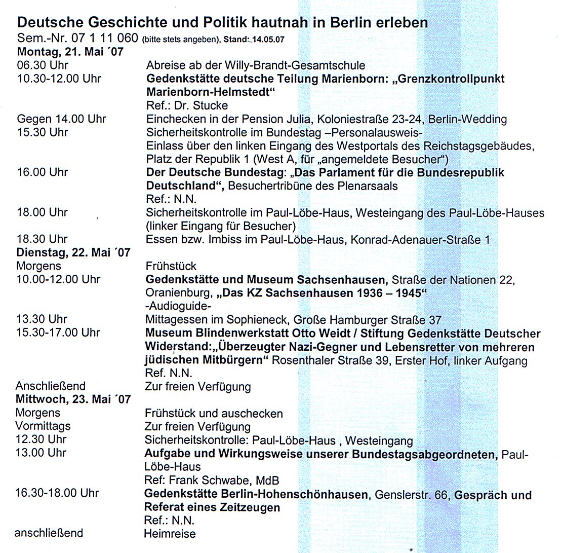 Ein großer Teil der Schülerinnen und Schüler des Abiturjahrgangs 2008 besuchten vom 21. bis zum 23. Mai 2007 Berlin.